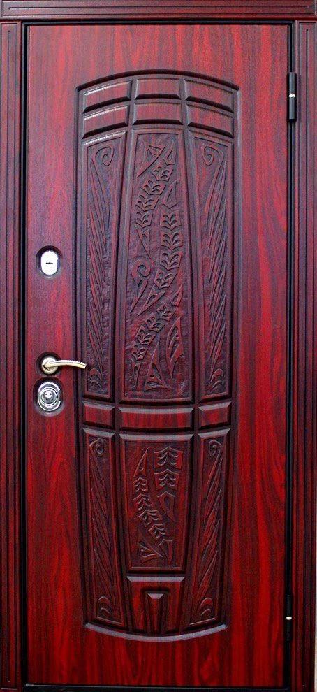 При изготовлении двери с отделкой виноритом на заказ, её можно сделать как глухой, так и декорированную вставками из стекла с элементами ковки. Для установки в дом такую дверь можно сделать с применением терморазрыва, и эта дверь будет надежно сохранять в доме тепло, не промерзая и не конденсируя.
