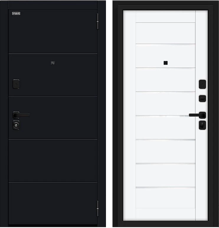 Надежная входная Дверь Браво Прайм/SBlack-Black Shell/White Silk премиум класса по цене 39 759 руб. Большая толщина стали защитит от проникновения в ваш дом, квартиру или коттедж. Используется очень качественная фурнитура: замки, цилиндры, ручки, защелки. Покрытие и отделка двери изготовлено под внимательным контролем производителя. Дверь имеет долгий срок службы и гарантию.